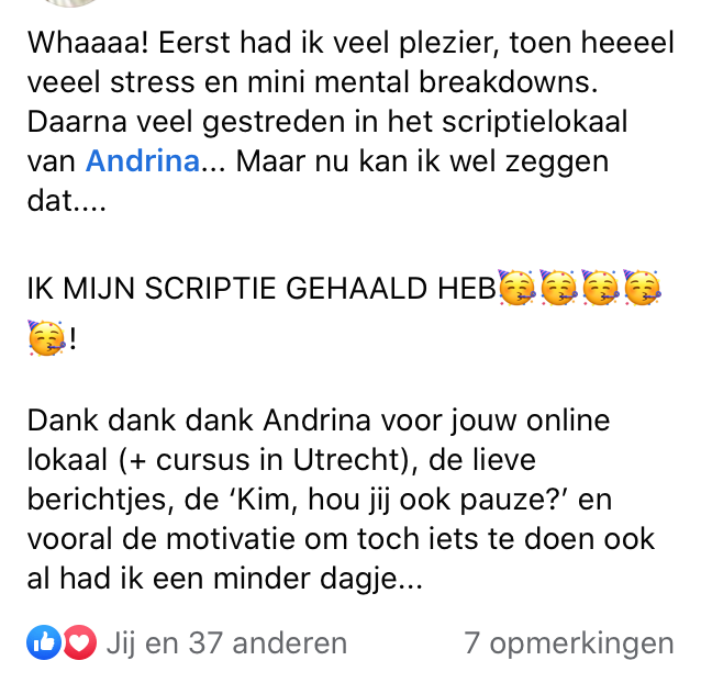 Mijn naam is Andrina Sol, sinds een paar jaar enthousiast cheerleader en stok achter de deur voor afstudeerstudenten.
